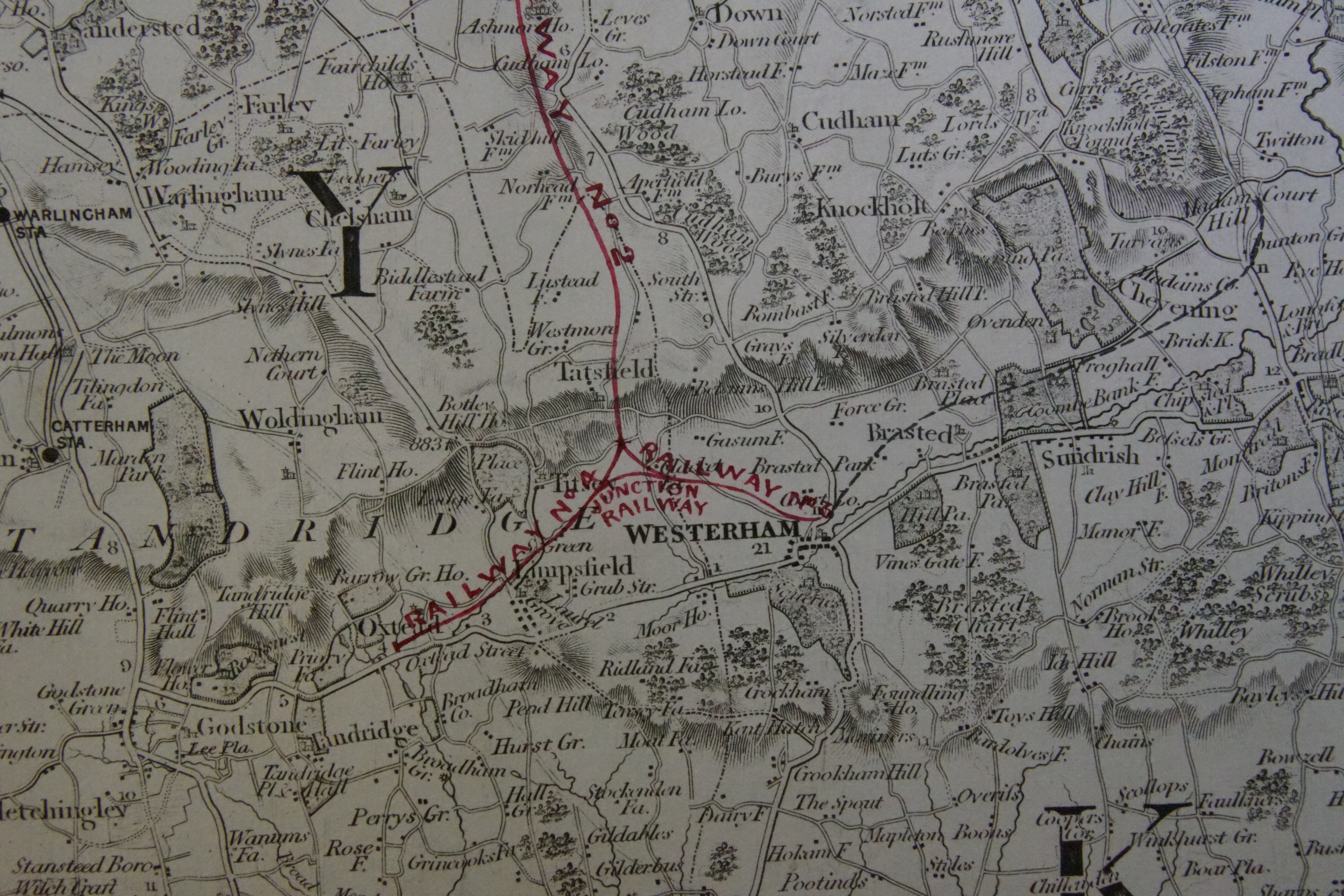 Oxted today has a busy station on the Southern Railway route from Victoria, between East Croydon and East Grinstead. Westerham was from 1881 the terminus of a branch off the South Eastern main line at Dunton Green, but this closed in 1962.