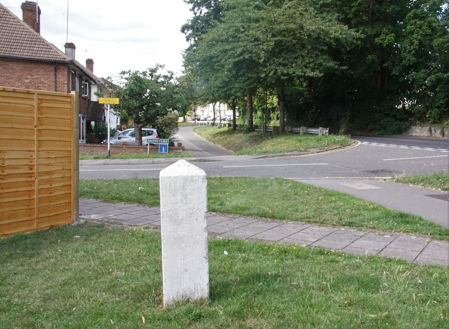The location was formerly the entrance to the Tubbendence estate, and is marked on the second map on the Tubbendence page. The road shown is called Dalton Close, after George Dalton, a 16th century owner.