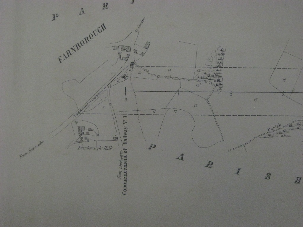The main line at this stage is still refered to as the Mid Kent (Bromley to St. Mary Cray) Railway, and the act also refers to assuming powers attained in the earlier but now redundant West End of London and Crystal Palace (Farnborough Extension) Act. This is thought to be because the alignment at the Farnborough end was the same, with all that this implies re compulsory land purchase, work sites etc. even though the junction with the main line was now different.