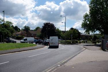 The route then runs through Green Street Green to rejoin the original one at today's roundabout.  In the photo below right the original route is in the distance where Old Hill emerges on the far side of the roundabout. Farnborough bypass is seen in the middle right where the van is joining, and the new route emerges from the right in the foreground having passed through Green Street Green.