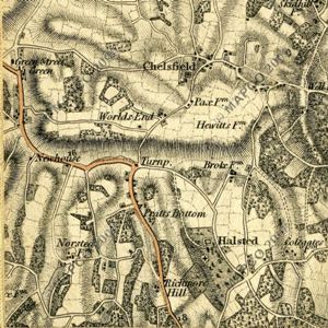 The first change was the diversion of the route after the George and Dragon to create the High Street and Farnborough Hill down to Green Street Green; and then continue through that village to rejoin the original route at the far end of Old Hill.  This may also be when the High Road was renamed Church Road.